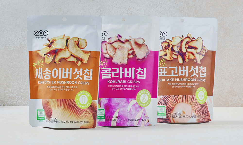 국내산 신선한 새송이버섯을 현미유로 저온의 기름에서 튀겨 영양 손실은 줄이고 원물의 맛과 향이 그대로 살아있는 새송이버섯칩 입니다.